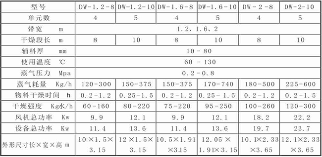 DW系列帶式干燥機(jī)是成批生產(chǎn)用的連續(xù)式干燥設(shè)備,用于透氣性較好的片狀、條狀、顆粒狀物料的干燥,對(duì)于脫水蔬菜、中藥飲片等類含水率高、而物料溫度不允許高的物料尤為合適;該系列干燥機(jī)具有干燥速度快、蒸發(fā)強(qiáng)度高、產(chǎn)品質(zhì)量好的優(yōu)點(diǎn),對(duì)脫水濾餅類的膏狀物料,需經(jīng)造粒或制成條狀后亦可干燥。