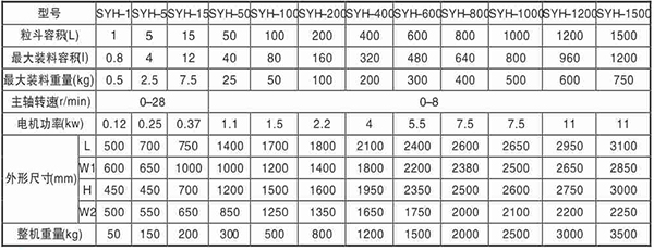 三維運動混合機技術參數: